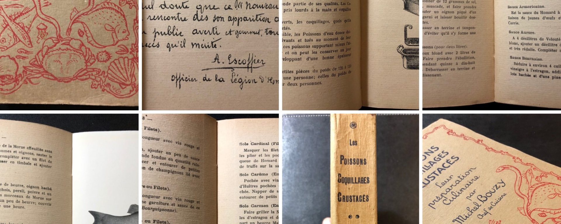 Couverture illustrée en rouge avec titre en noir, 279 pp., 5 pl. en noir hors texte, dessins en noir in texte, Table des recettes, bon état. Préface d’Auguste Escoffier.