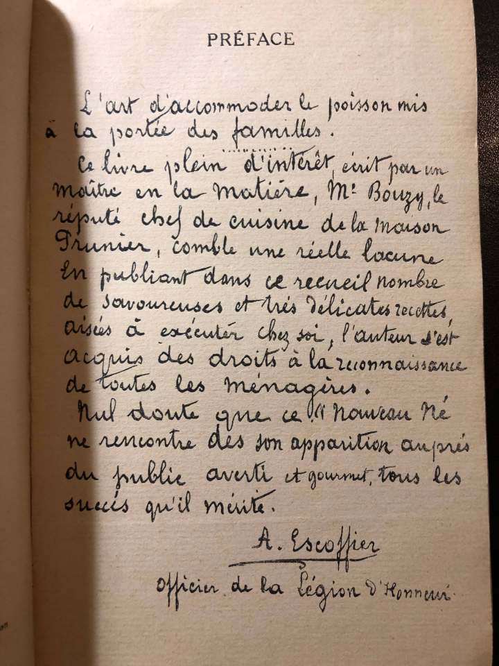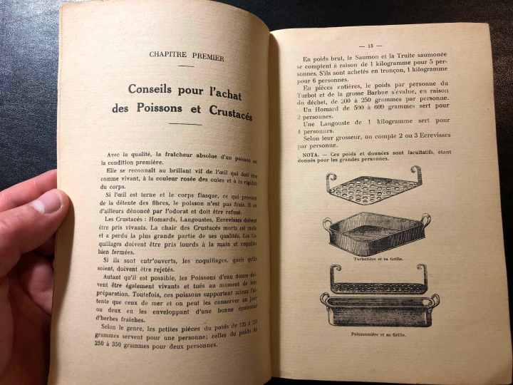 On y trouve des conseils pour l’achat et la préparations des poissons de mer et d’eau douce, ainsi que pour les coquillages et les crustacés. Un des meilleurs ouvrages pour la cuisine de la mer. L’auteur fut chef de cuisine à Paris chez Prunier, connu pour l’excellence de ses recettes de poissons et crustacés, mais aussi pour l’originalité et la perfection de ses sauces ! Un large chapitre de ce livre est d’ailleurs consacré au sujet. Un incontournable pour les amoureux des produits de la mer.