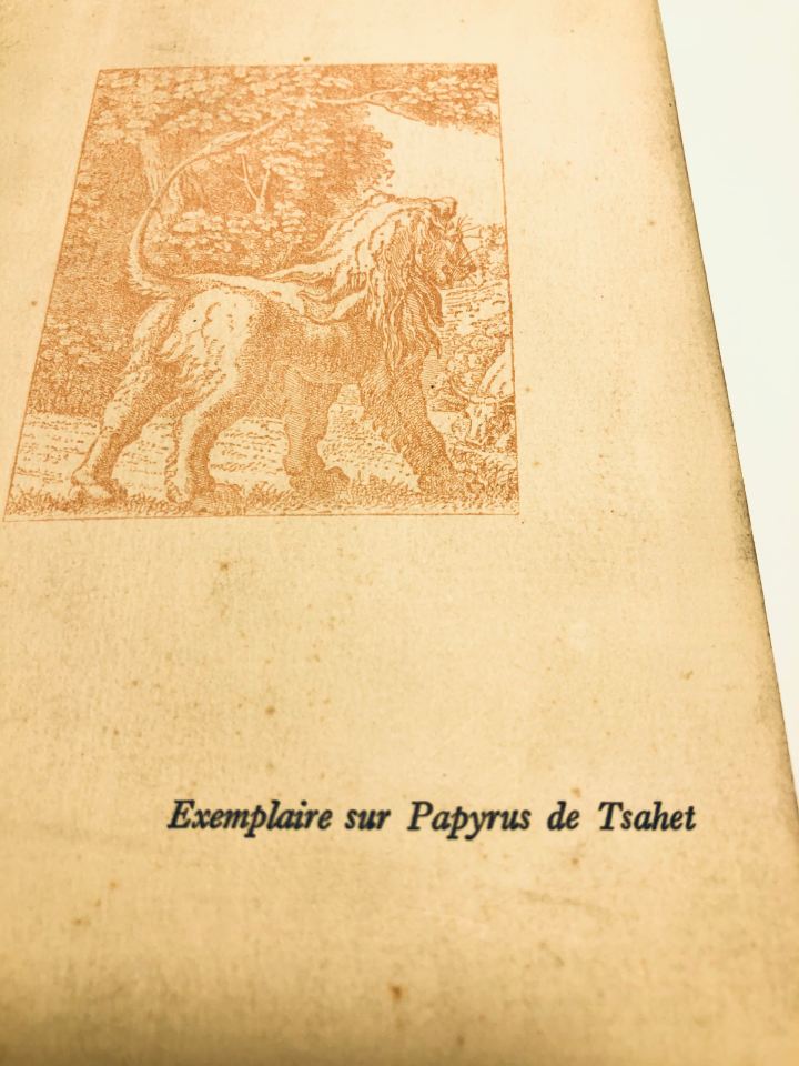 Nombreuses gravures et bandeaux illustrés en noir et blanc dans et hors texte dont frontispice. EXEMPLAIRE N° 1363 . Exemplaire sur « Papyrus de Tsahet ».